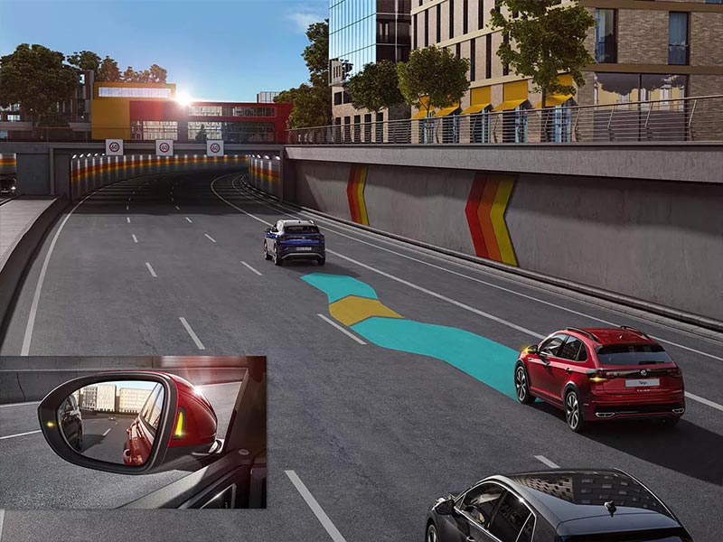 Thanks to Forward Collision Warning Front Assist with Autonomous Emergency Braking, your Taigo can help reduce the severity of the accident or, ideally, avoid the accident in the event of a collision threat. It can detect pedestrians and vehicles on the road and warn the driver in time. If the driver does not react the system can initiate emergency braking. Optional with Style and R-Line models.