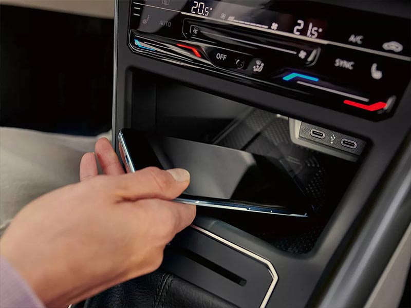 Wireless phone charging* and a front middle armrest with USB charging ports ensure that you remain connected throughout your drive. The Taigo’s leather multifunctional steering wheel and keyless entry* add to the overall practicality and accessibility of the car. Connectivity remains a priority in the Taigo by ensuring your phone is connected with your car using App-Connect and We Connect Go. Additional features such as Voice Control and Navigation System are optional with each model.